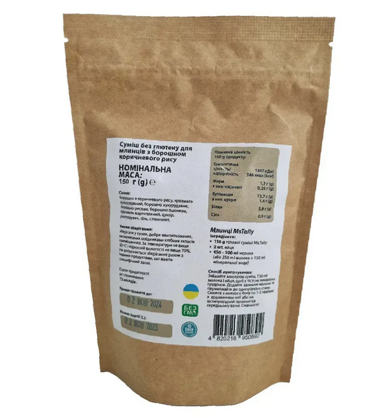 Cмесь без глютена для блинов с мукой из коричневого риса Ms. Tally 150 г