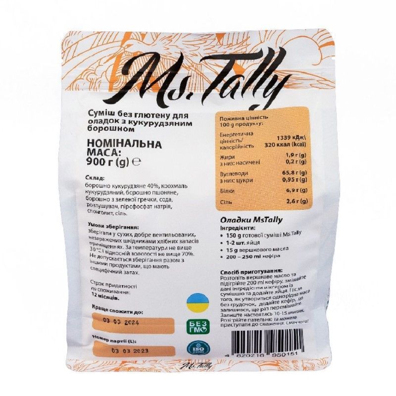 Cмесь без глютена для оладей с кукурузной мукой Ms.Tally 900 г
