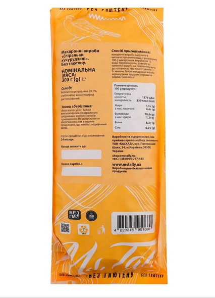 Макароны без глютена спиральки кукурузные Ms. Tally 300 г