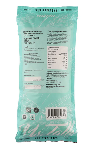 Макароны без глютена спиральки рисовые Ms. Tally 300 г